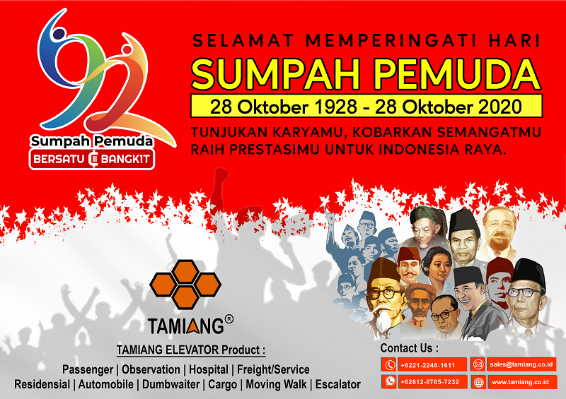 Tamiang Elevator-Escalator wishes you Happy commemorating the 92nd Youth Pledge Day. Hopefully the unity and integrity of the Republic of Indonesia can always be maint.